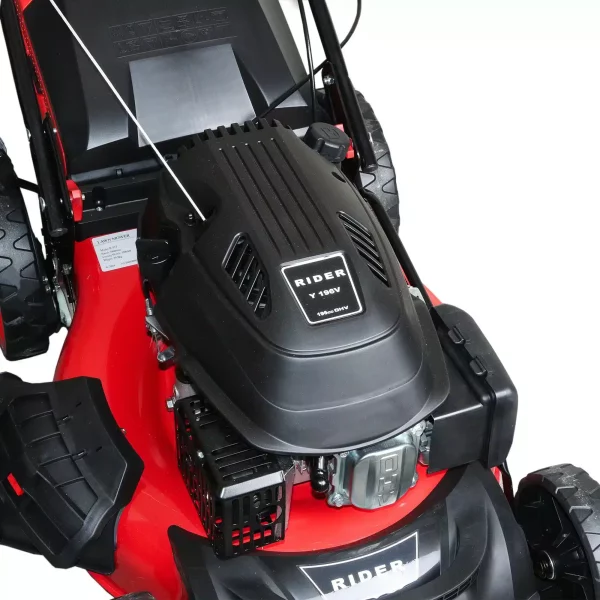 * Jei šiuo metu jūsų norimo produkto nėra, atsiųskite užklausą el. paštu info@rstechnika.lt. Galbūt produktas jau pakeliui pas mus!Variklis RIDER Y196V OHV, 6 AG / 4,5 kW, 196 cm³, benzininis, vieno cilindro, keturtaktis, aušinamas oru Kuro bako talpa 1 l Pjovimo plotis 510 mm Pjovimo aukštis 30–90 mm Surinkimo talpa 75 l Ratų dydis priekiniai – 8", galiniai – 11" Svoris 39 kg -