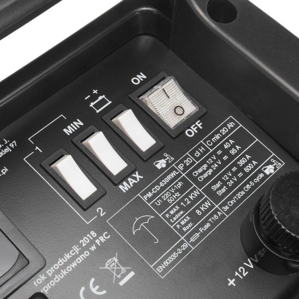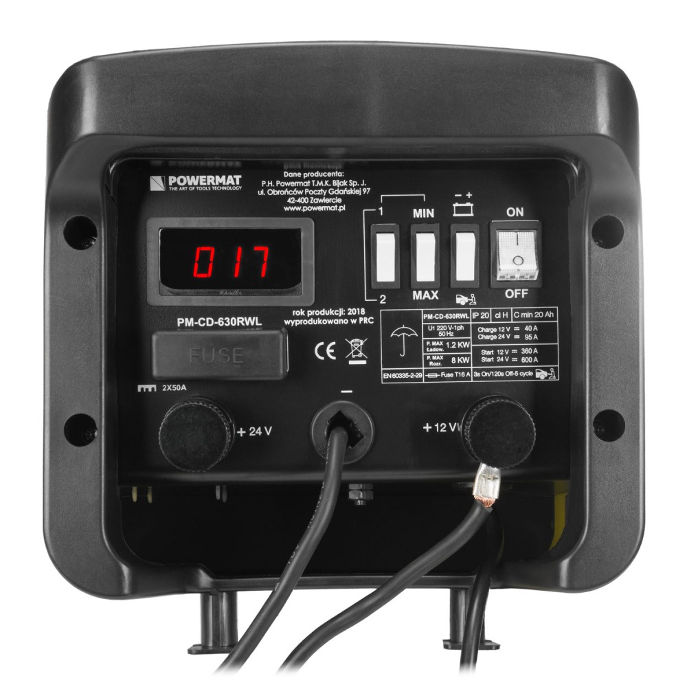 Aukštos kokybės ir tikslus akumuliatoriaus pakrovėjas su paleidimo funkcija POWERMAT PM-CD-630RWL. Šis produktas tinkamas tiek profesionaliam naudojimui ūkio darbuose, automobilių dirbtuvėse, tiek savų reikmių naudojimui garaže. Su šiuo prietaisu galima krauti tiek 24 V, tiek 12 V įtampa.
