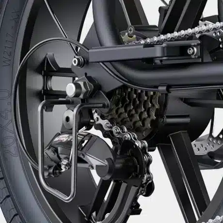 ENGWE M1 aprūpintas SHIMANO 7 pavarų sistema, kuri užtikrina sklandų ir tikslų perjungimą. Tai leidžia vairuotojui lengvai prisitaikyti prie įvairių kelio sąlygų ir reljefo, užtikrinant optimalų pedalų pasipriešinimą tiek kylant į kalną, tiek leidžiantis nuo jo.