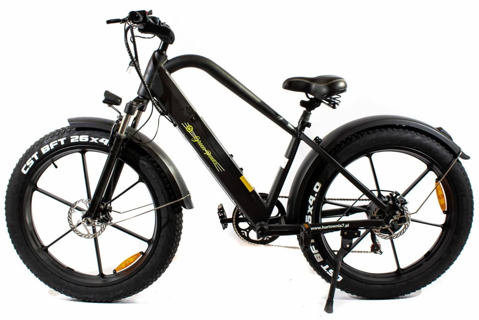 Green Power Cruiser (LTA-ST007) – visiems entuziastams, ieškantiems „fat bike“ tipo dviračio, tai puikus pasirinkimas! Šis dviratis dėl savo gabaritų ir techninių parametrų puikiai tinka suaugusiems, 160-195 cm ūgio žmonėms. Dėl tvirto aliuminio ir 500 W variklio bei „Fat Bike” technologijos šis dviratis turi gerą sukibimą su kelio danga ir atlaiko iki 110 kg apkrovą.
