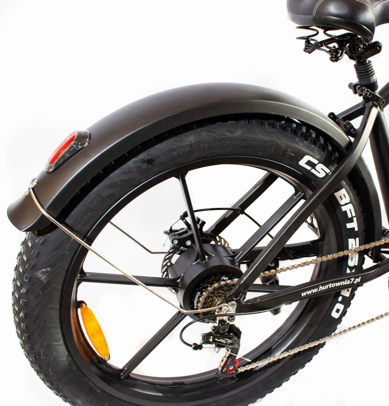 - Storos 26×4.0 padangos, kurių dėka įveiksite įvairius kelius, važiuosite maloniai ir galėsite mėgautis važiuodami tiek asfalto danga, tiek miško keliais ar net važiavimu paplūdimiu.