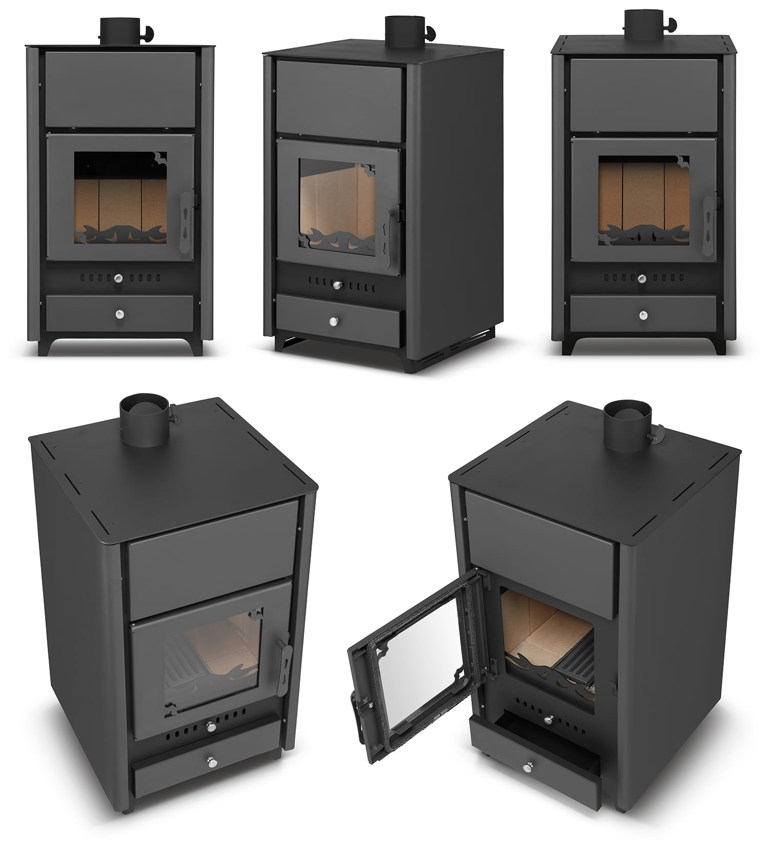 | Kuras | mediena, briketai, anglis |