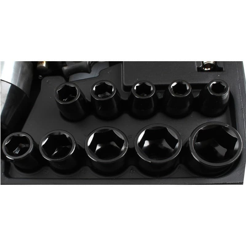 - 10 vnt. galvučių pagamintų iš CrV plieno 1/2″: 9, 10, 11, 13, 14, 17, 19, 22, 24 , 27mm